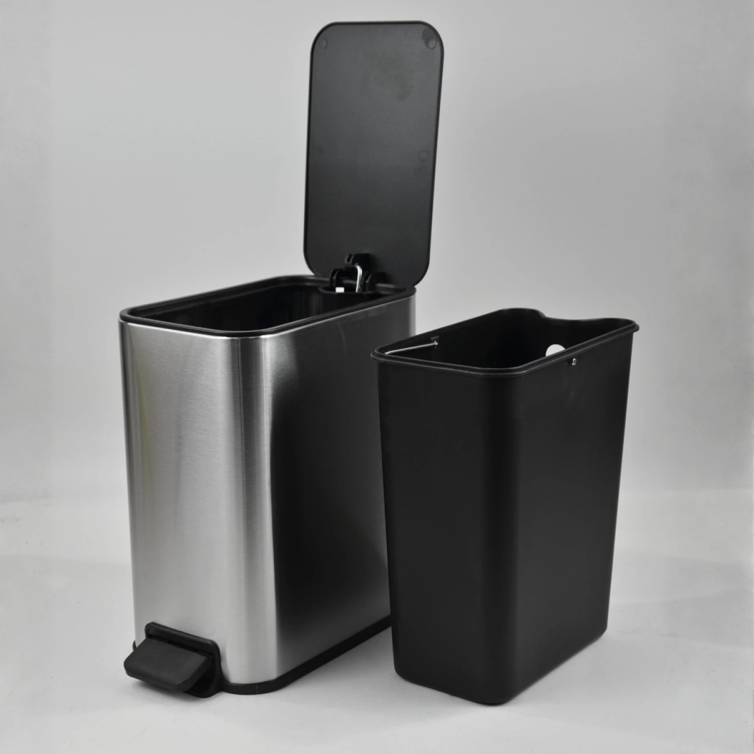 Incluye recipiente interior de plástico extraíble para facilitar la limpieza y el cambio de bolsas de basura.